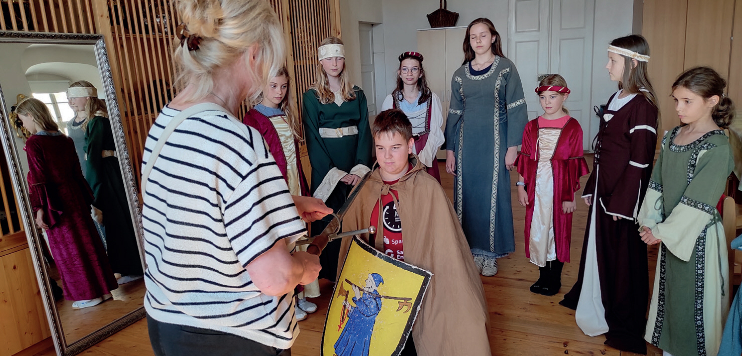 „Im Kohrener Land ist es so schön, da wollen wir wieder hin“, waren sich die Kinder unserer Kurrende einig. So ging es also am Sonnabend, den 6. September, wieder in die hübsche Gegend südlich von Leipzig. Das erste Ziel war die mittelalterliche Burg Gnandstein, wo uns eine Gästeführerin um und in die Burg führte, in Brunnenhaus und mittelalterlichen Pferdestall, Burghof, Kemenate und Rittersaal. Schließlich wurde Johannes in den Knappendienst aufgenommen im Kreise junger Hoffräulein.